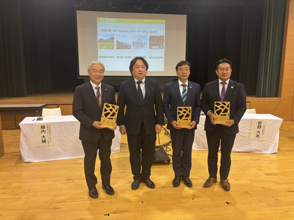 あわせて、BTVに新たに認定された地域への表彰式が行われました。2025年は、奈良県明日香村、和歌山県高野町、香川県小豆島町、香川県土庄町がBTVに認定され、観光庁より認定トロフィーが贈られました。